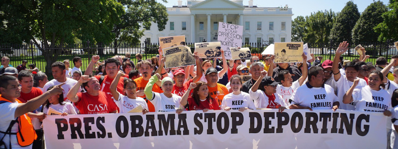 El presidente Obama emitió un decreto ejecutivo relacionado con inmigrantes indocumentados. La “Acción diferida para los llegados en la infancia” (DACA, 2012) otorga a jóvenes inmigrantes indocumentados la postergación temporal del proceso de deportación y un permiso de trabajo. En 2015, su gobierno también emitió nuevas políticas para centrar la aplicación de las leyes migratorias en personas que han sido condenadas por un delito mayor o delito menor sustancial, o varios delitos; representan una amenaza terrorista, o cruzaron la frontera recientemente. Se suponía que se dejaría en paz a los inmigrantes indocumentados respetuosos de la ley, pero muchos se vieron envueltos en redadas. La cantidad sin precedentes de inmigrantes deportados durante el gobierno de Obama le ganaron el título de “deportador en jefe”.