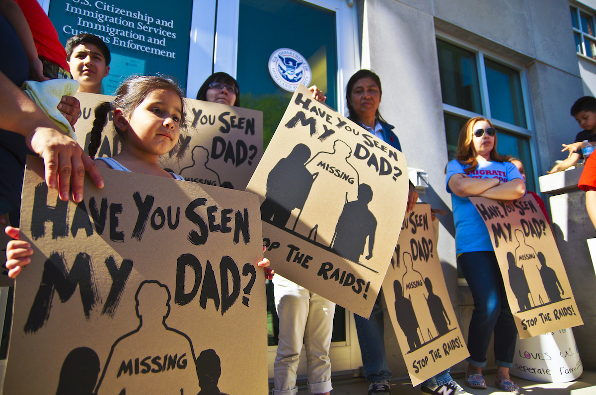 Protesta contra las deportaciones frente a la oficina de Inmigración y Control de Aduanas de los Estados Unidos, Milwaukee, WI, 2014. Foto por Joe Brusky/Flickr Creative Commons.